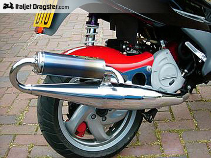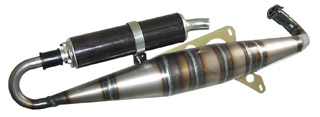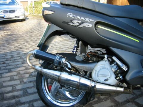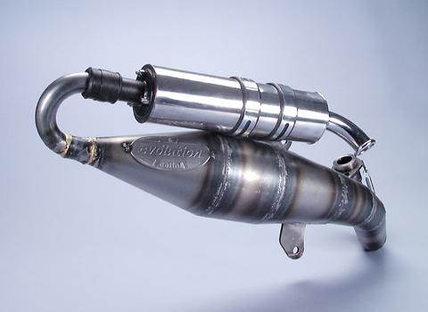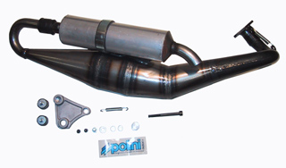 Der Polini Evolution ist der Nachfolger des For Race. Was natürlich sofort ins Auge fällt, ist die einzigartige Halterung des Endtopfes mit 2 Schellen. In Verbindung mit dem Polini 180cc Zylinder sollen locker über 20PS möglich sein. Leistungsmässig wird er sich wahrscheinlich auf das Niveau der Malossi Anlage einordnen, da er nochmal mehr Leistung als der For Race bringt. Kein TÜV !