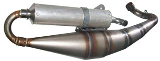 Der Jolly Moto ist der leichteste Auspuff auf dem Markt. Er wiegt nur 2,6kg und ist relativ erschwinglich. Er bringt gute Leistung bei etwas höheren Drehzahlen. Abgesehen davon ist er auch noch relativ leise und vor allem haltbar. Es gibt inzwischen 3 Versionen, für 125cc, 180cc und für überarbeitete 180cc. Kein TÜV, aber Eintragung ist möglich mit diversen Änderungen !