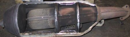 Der beste Alltagsauspuff für den Runner ist und bleibt der Original Auspuff. Er bringt verwunderlicherweise in allen Drehzahllagen Leistung, wohingegen alle Resonanzanlagen nur in bestimmten Leistungsbereichen sich wohlfühlen. Ausserdem ist der O-Auspuff leise und erlaubt. Auf dem Bild sind die Innereien des O-Auspuffs zu sehen. Mit Tüv !!!