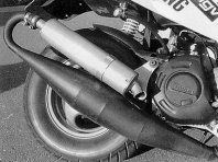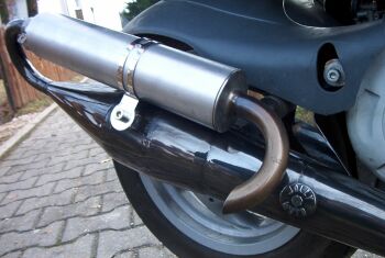 Der Scorpion V2A ist der einzigste Rennauspuff mit ABE. Ausserdem ist er aus Edelstahl gefertigt, d.h. Rost ade! Durch das Edelstahl wiegt er aber auch ein bisschen was, aber das macht die coole Optik wieder wett. Auf dem Bild ist die Version mit Carbon-Endtopf zu sehen. Allerdings gibt es jetzt schon eine 3. Version dieser Tüte die nun endlich haltbar sein soll. Aber selbst wenn nicht, man hat ja 3 Jahre Garantie. Der Auspuff bringt übrigens gute Leistungssteigerung im niedrigen Drehzahlniveau. ABE / TÜV !!!