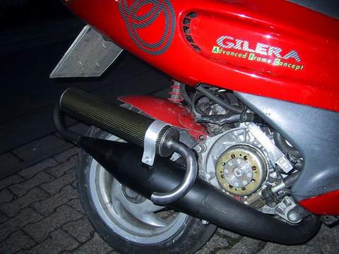 Der Hester ist eine sehr seltene Anlage. Auffällig ist gar kein Ausdruck für diesen Auspuff, sowas lautes habe ich noch nie gehört. Bringt Leistung erst ab 9500rpm und hält diese schön an bis über 11000rpm. Brutale Leistungsentfaltung in diesem Drehzahlbereich. Dieser Auspuff wird nicht mehr von Hester gebaut. Es gibt ihn aber im Ausland unter anderen Namen. Simonini und DIG vertreiben diesen Auspuff mit anderen Endschalldämpfern und kleinen Änderungen. Kein TÜV !